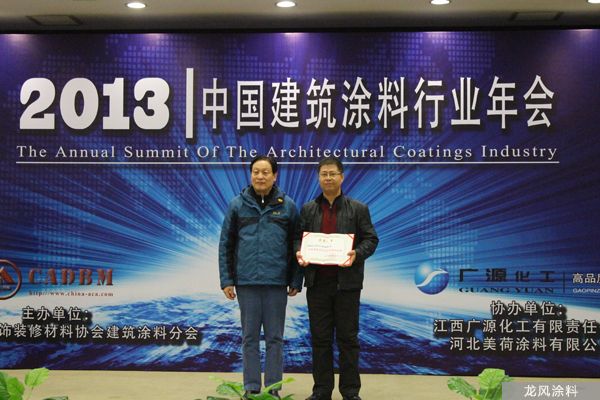 2013年龍風(fēng)公司被授予中國建筑涂料協(xié)會(huì)秦皇島辦事處